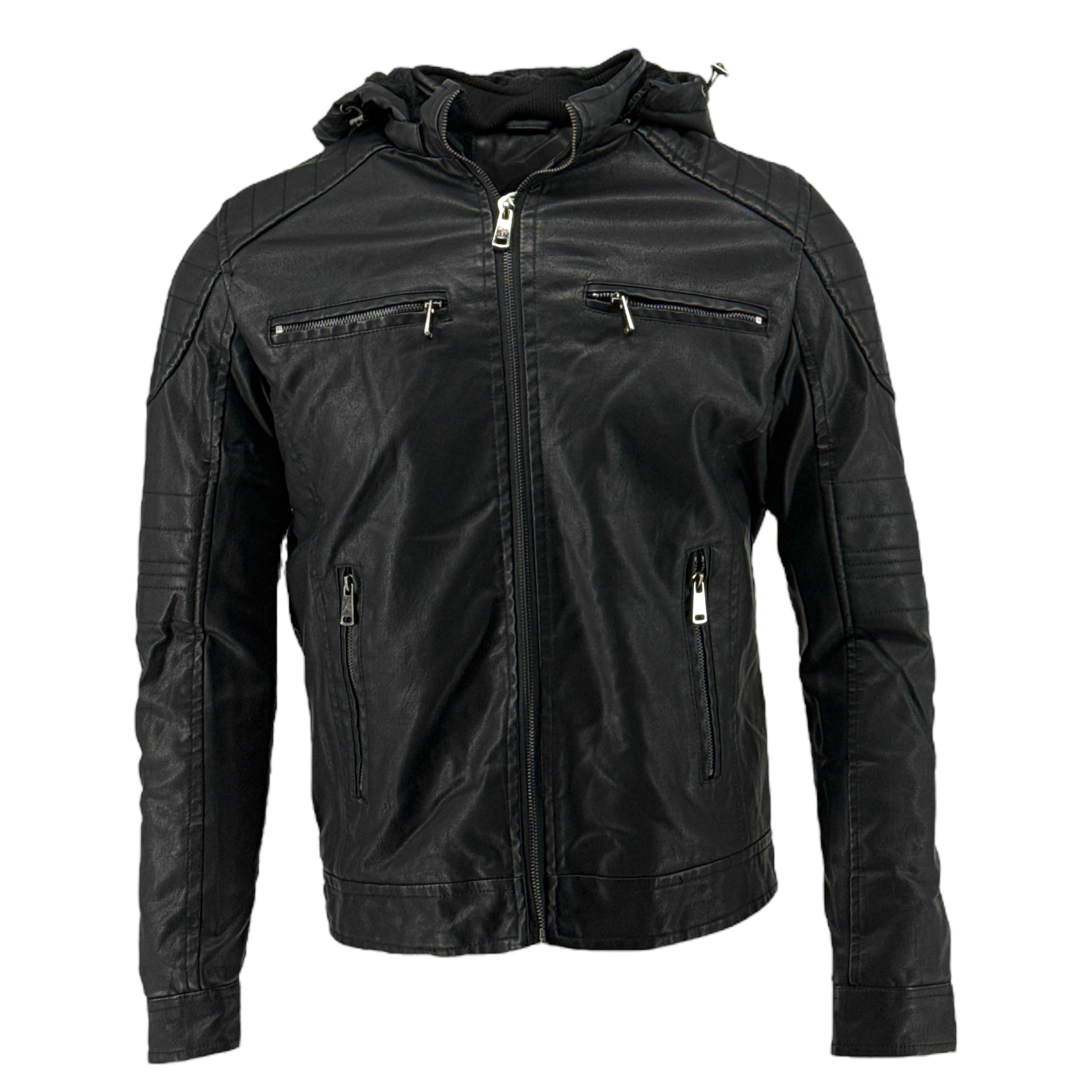 Μπουφάν Δερματίνη Ανδρικό 7477 με κουκούλα και εσωτερική επένδυση γούνα.