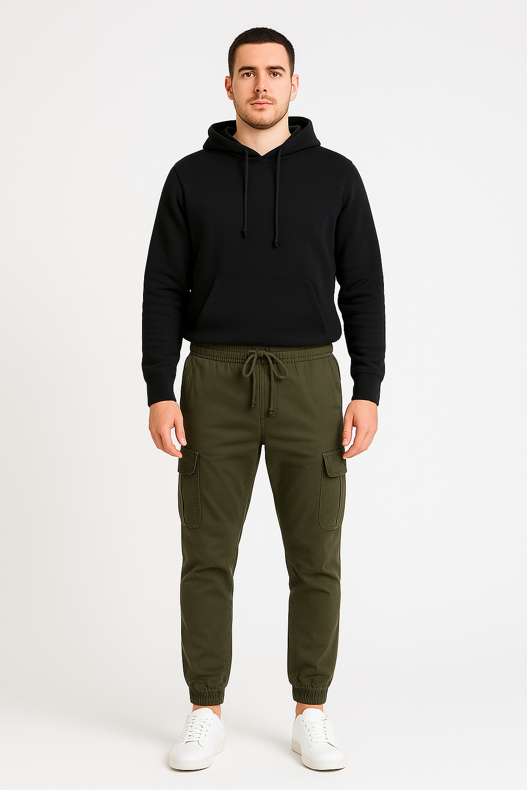 Cargo Παντελόνι Ανδρικό 6954 λοξή τσέπη chino εξωτερική πλαϊνή τσέπη, λάστιχο στη μέση και κορδόνι. Πίσω τσέπη καπάκι και λάστιχο στο τελείωμα 98% βαμβάκι 2% σπάντεξ.