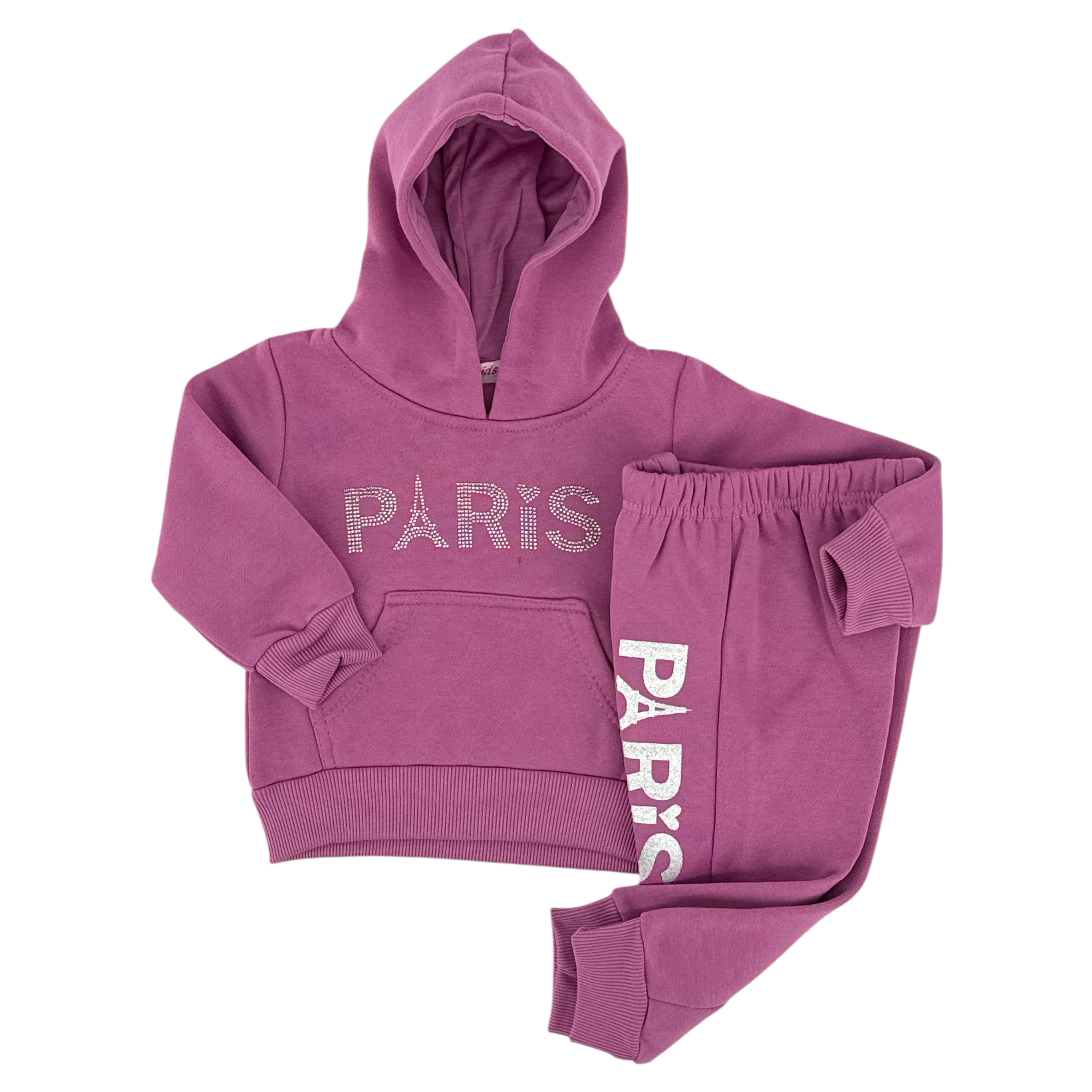 Σετ Bebe Για Κορίτσι SX-1029 2τμχ μπλούζα με κουκούλα, τσέπες και τύπωμα γκλίτερ. Παντελόνι με λάστιχο στη μέση και τύπωμα.