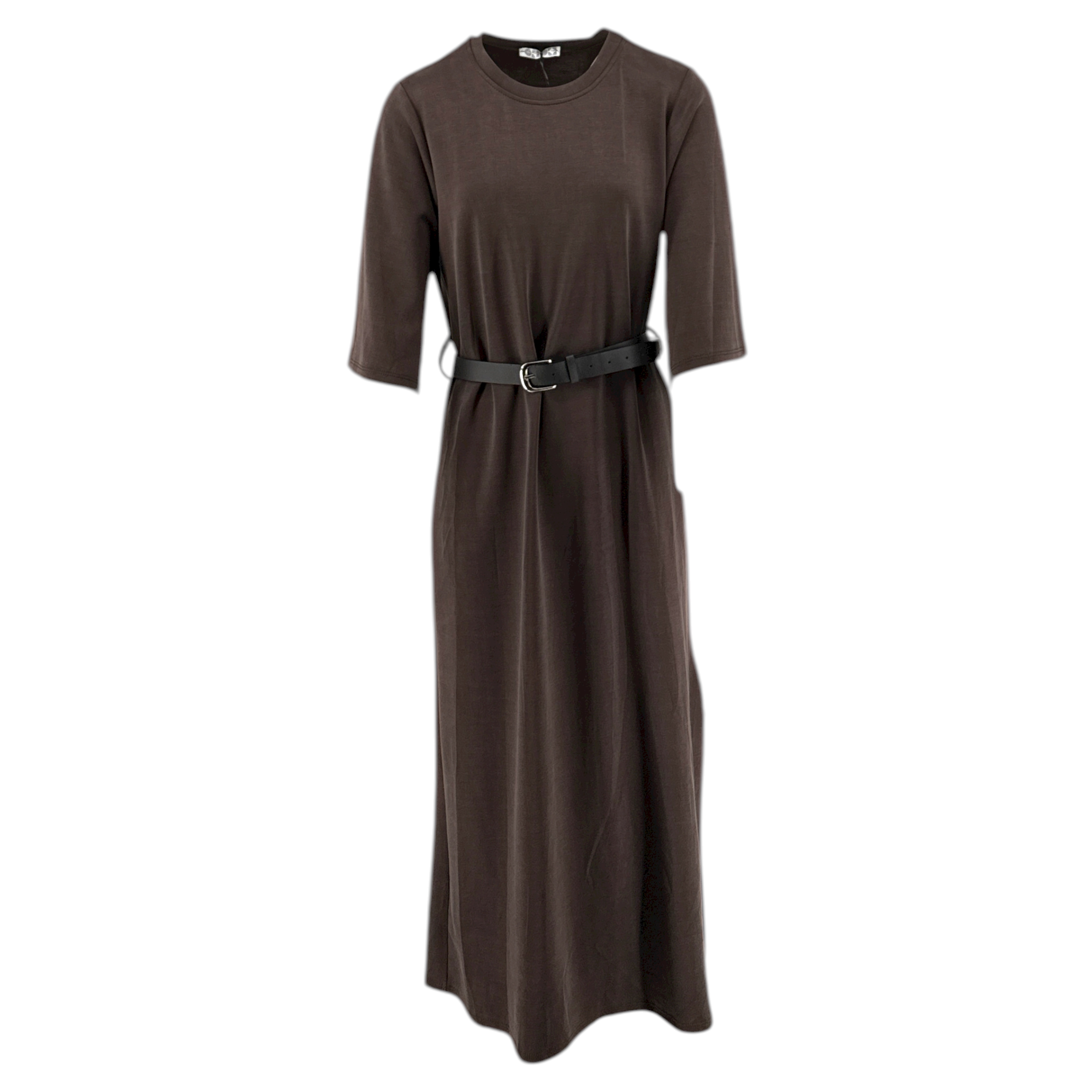 Φόρεμα Γυναικείο 19513 μακρύ με μαλακό ελαστικό ύφασμα, 3/4 μανίκι και αποσπώμενη ζώνη. Είναι one size και καλύπτει μεσαία και μεγάλα μεγέθη.