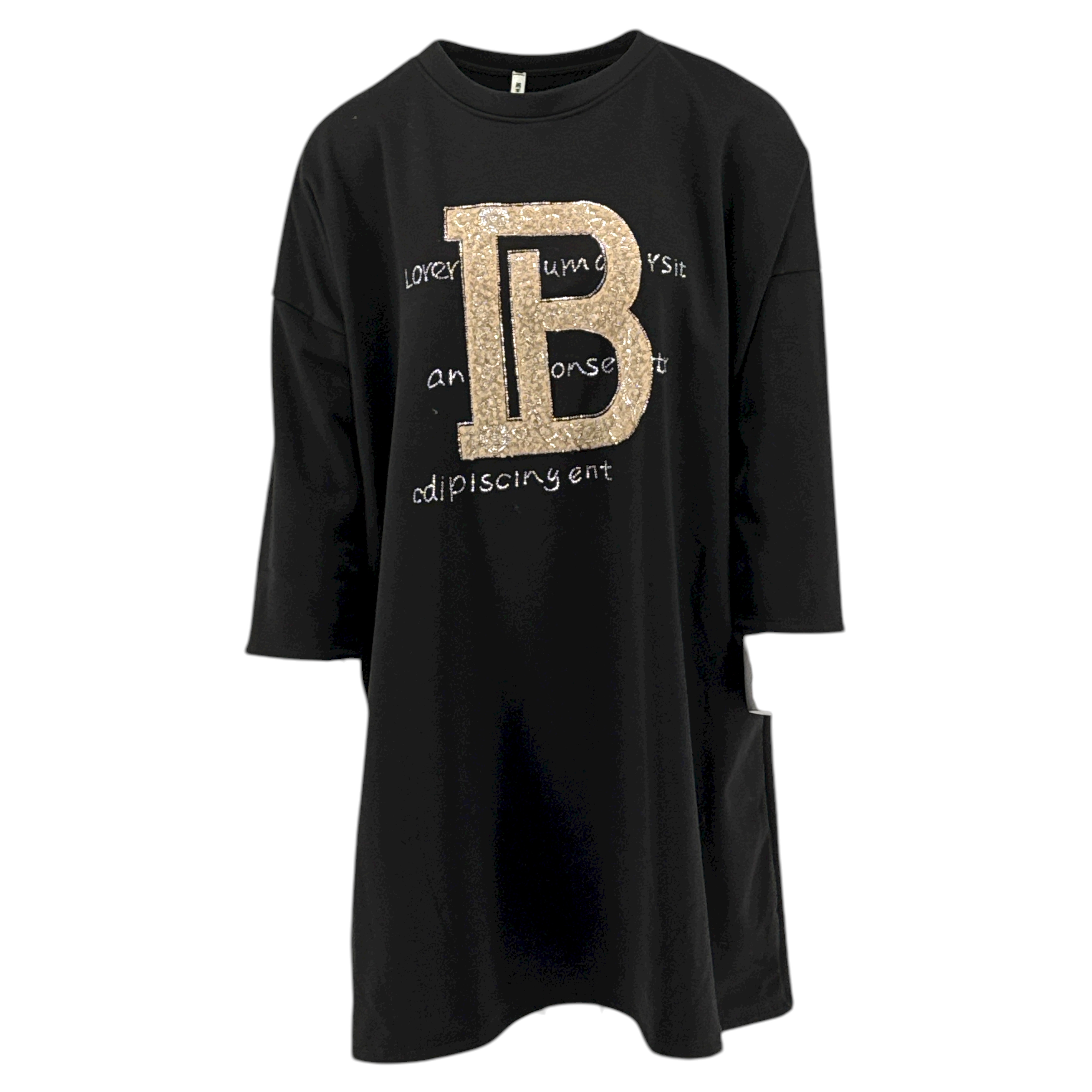 Φόρεμα Γυναικείο μπλουζοφόρεμα σε ελαστικό, γεμάτο, ζεστό ύφασμα με πολύ ωραίο τύπωμα στρας και χνούδι. Είναι oversized one size και καλύπτει μεσαία και μεγάλα μεγέθη.
