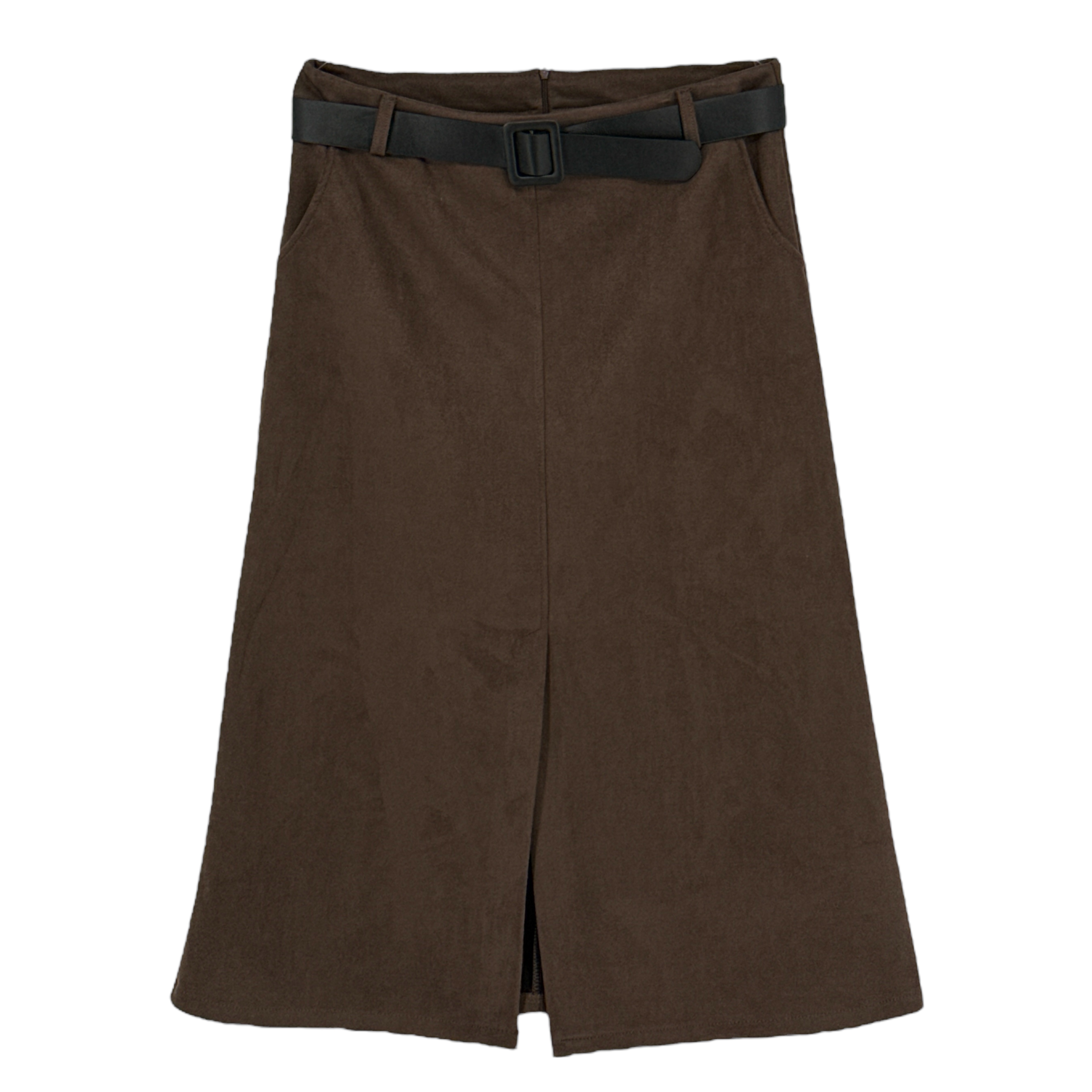 Φούστα Γυναικεία μονόχρωμη τύπου αλκαντάρα με φερμουάρ πίσω και αποσπώμενη ζώνη. Είναι σε άλφα γραμμή.