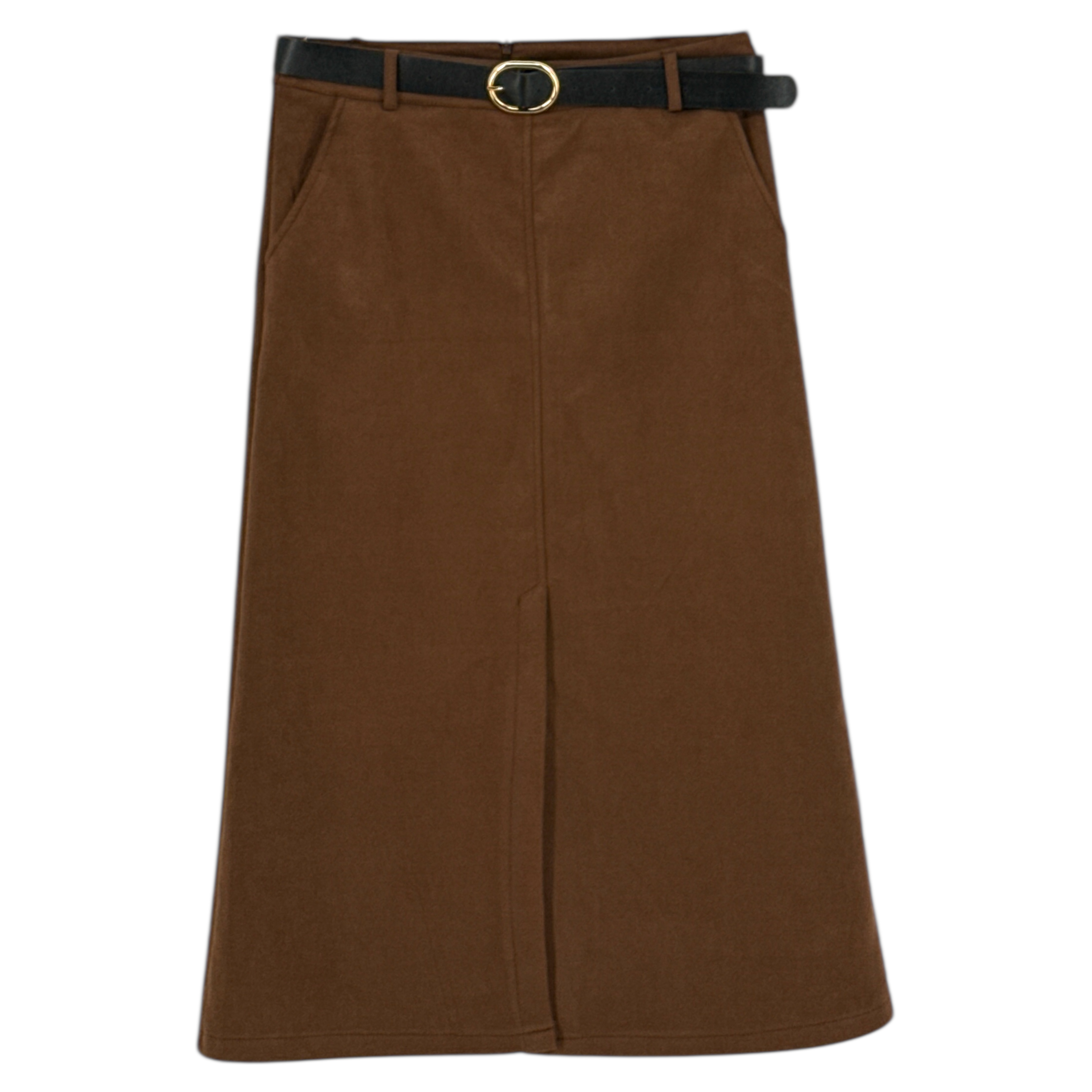 Φούστα Γυναικεία 3048 μονόχρωμη τύπου αλκαντάρα με φερμουάρ πίσω και αποσπώμενη ζώνη. Είναι σε άλφα γραμμή.
