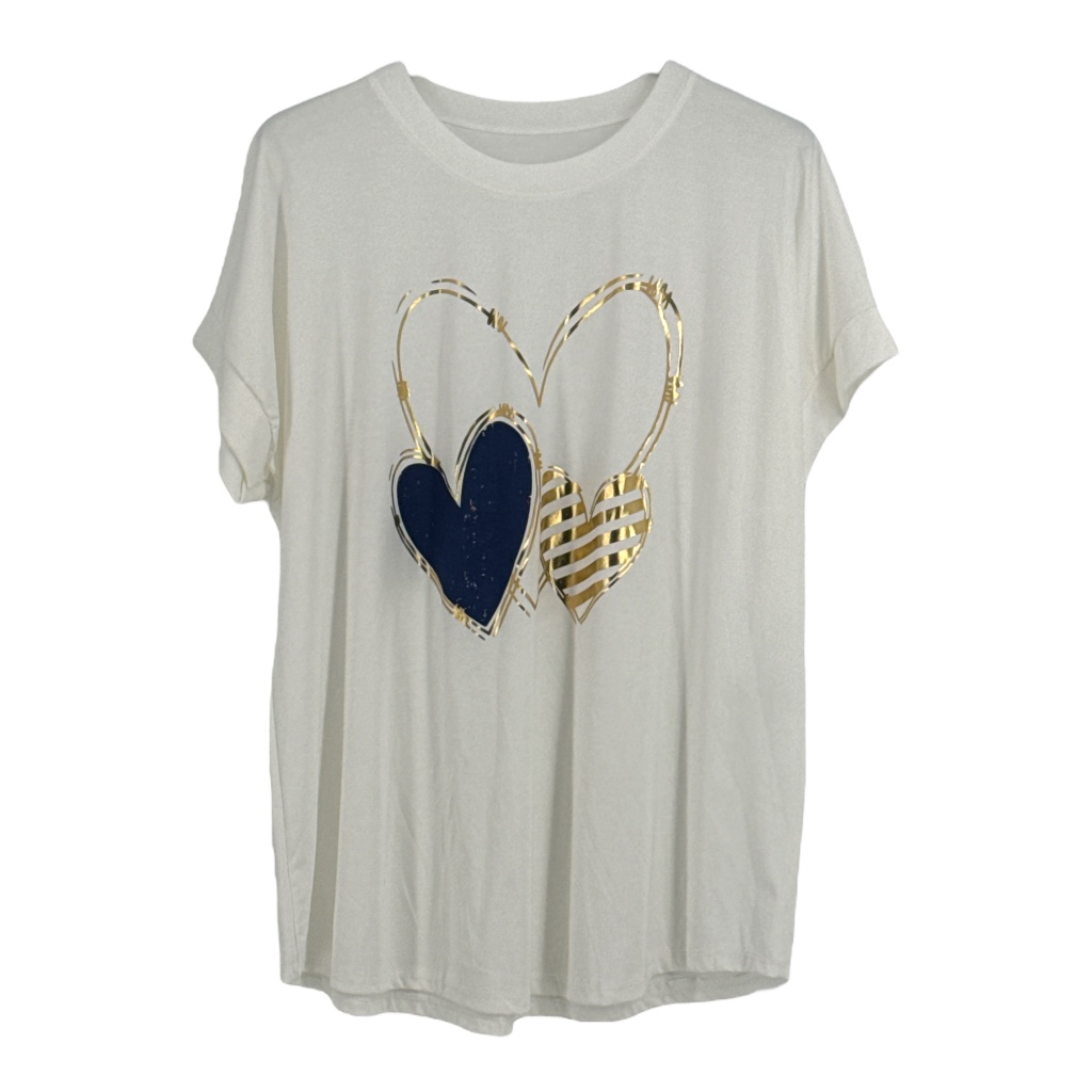 Μπλούζα Γυναικεία 2218 κοντό μανίκι με ανοιχτή λαιμόκοψη σε χυτό ελαστικό ύφασμα με ρεγκλάν μανίκι και υπέροχο χρυσοτύπωμα. Είναι oversized καλύπτει και πολύ μεγάλα μεγέθη.