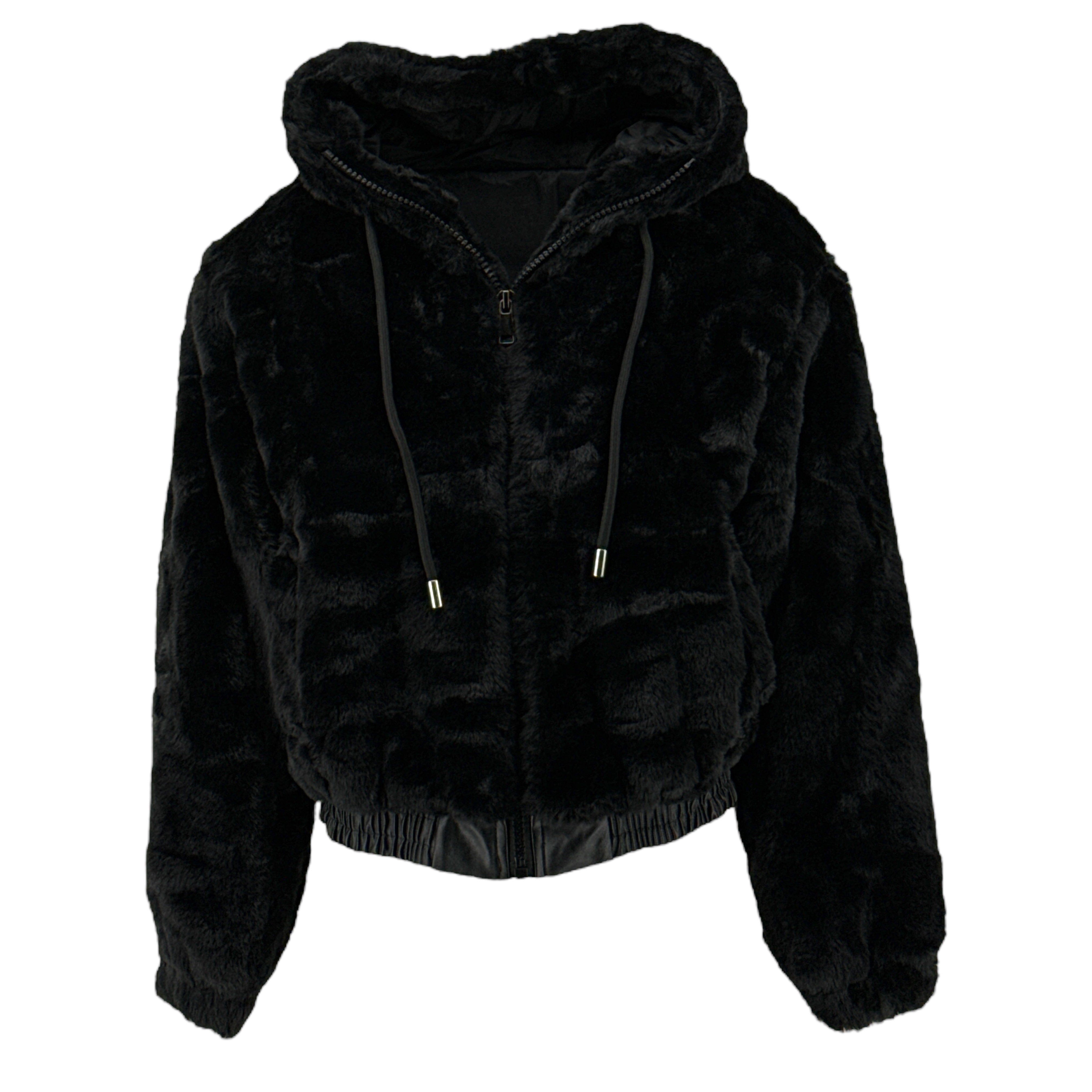 Γουνάκι Γυναικείο μπουφάν μονόχρωμο με ενσωματωμένη κουκούλα και κορδονέτο. Με φερμουάρ μπροστά και λάστιχο δερματίνη στο τελείωμα. one size καλύπτει μικρά και μεσαία μεγέθη.