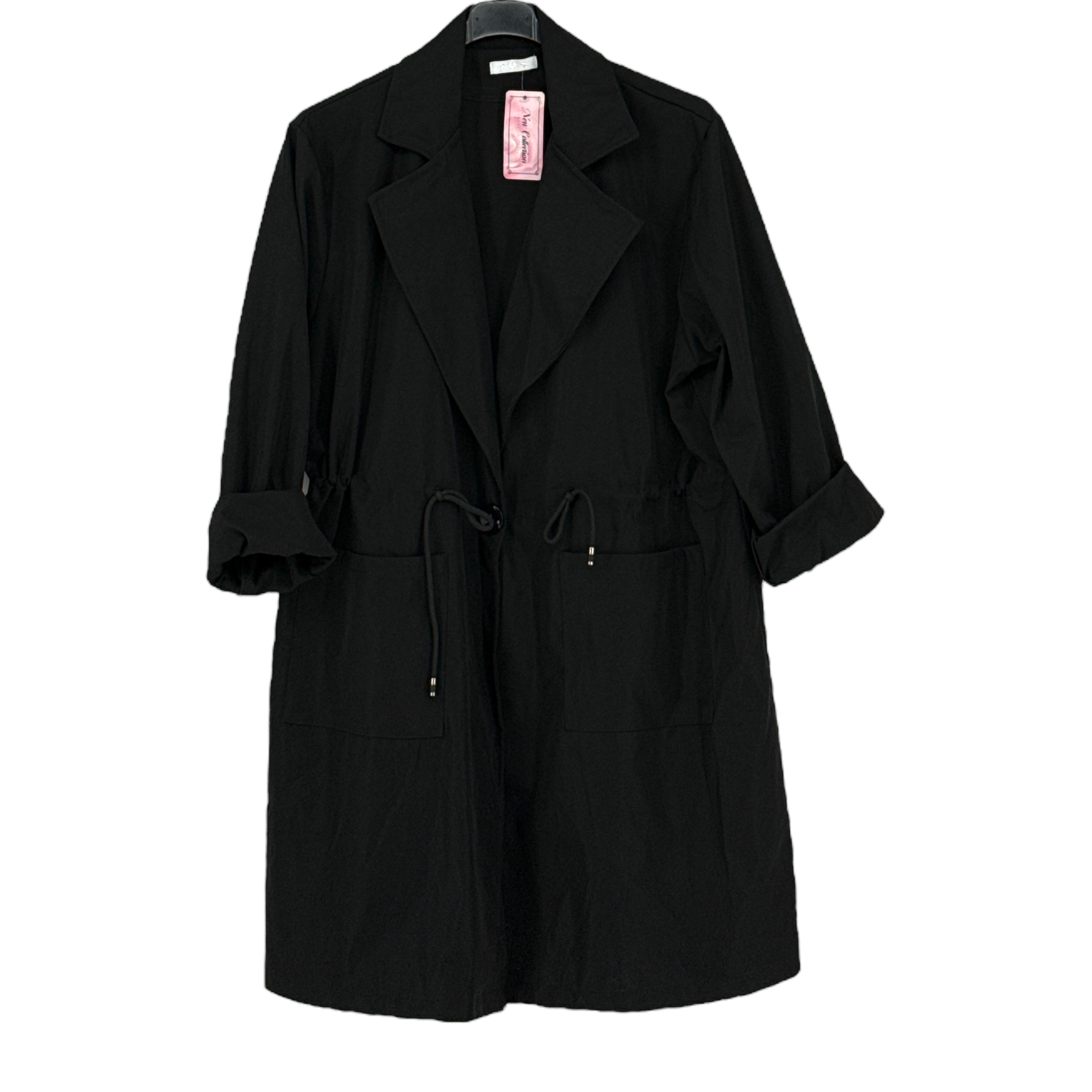 Καμπαρντίνα Γυναικεία σε μεσαίο μήκος μονοκούμπι με κορδόνι στη μέση. Έχει πέτο, εξωτερικές τσέπες, είναι one size oversized και καλύπτει και μεγάλα μεγέθη.