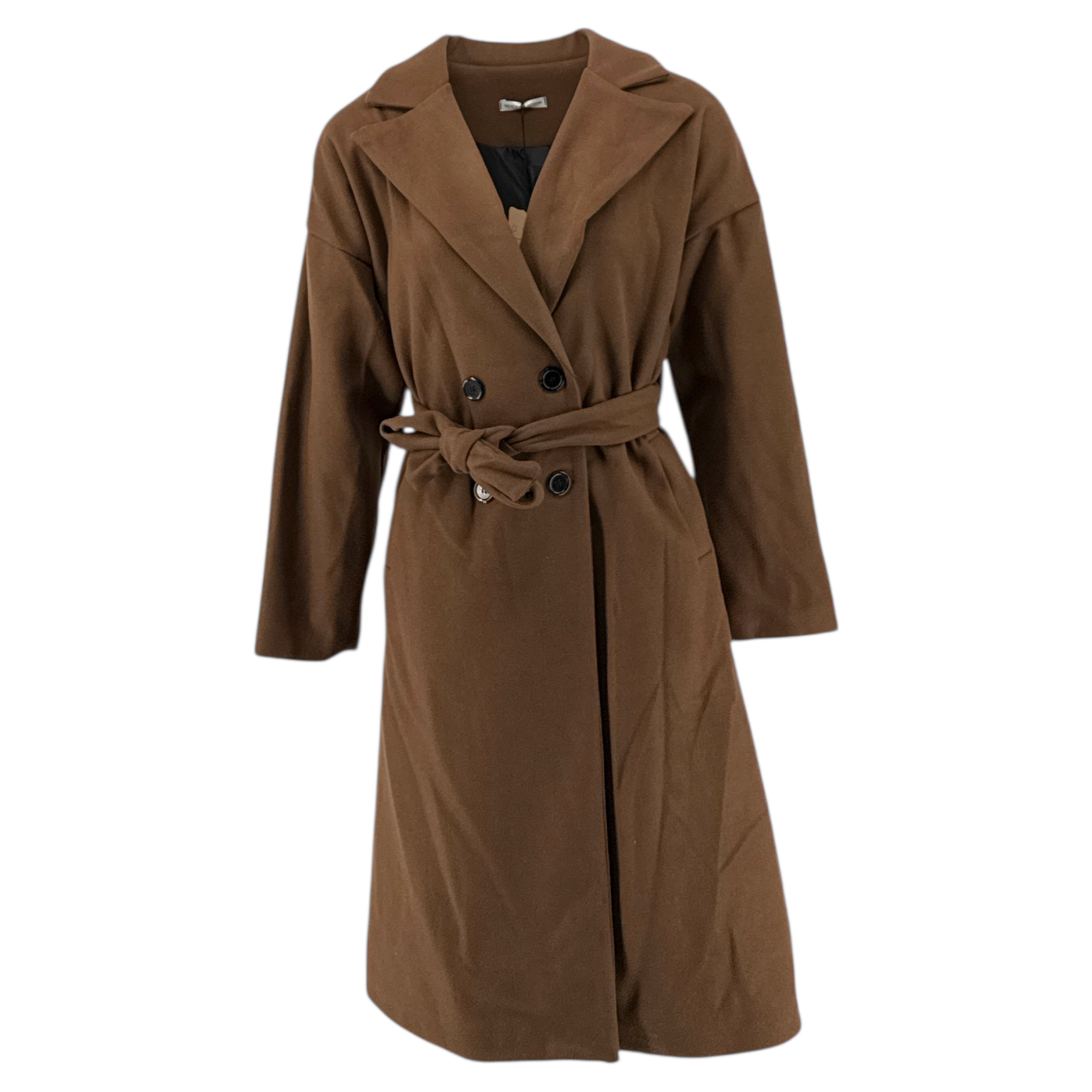 Παλτό Γυναικείο D525 μακρύ με πέτο, blaizer σταυρωτό, τσέπες φιλέτο και ζώνη καλύπτει μεσαία και μεγάλα μεγέθη