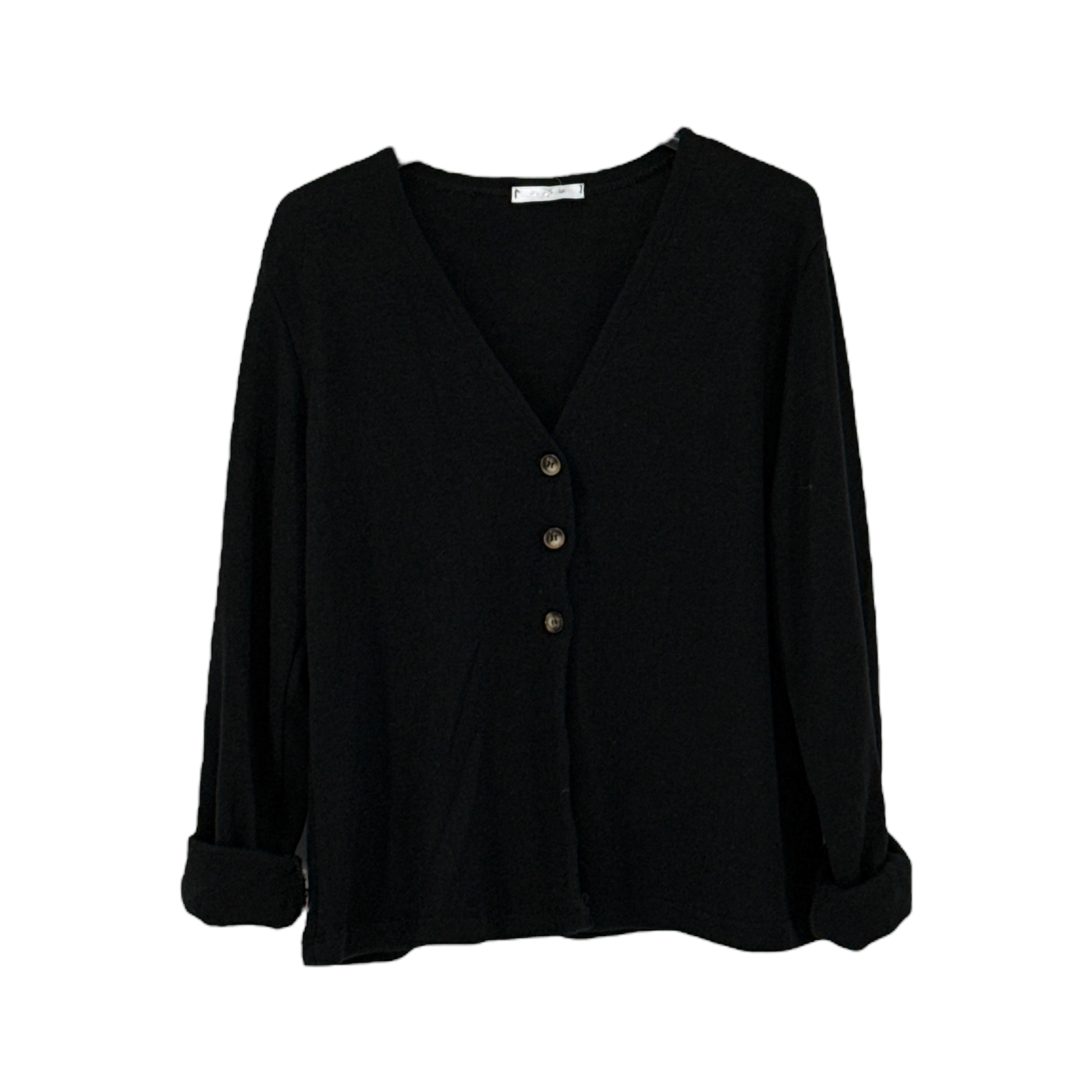 Ζακέτα Πλεκτή Γυναικεία μονόχρωμη σε V με 3 κουμπιά και ανοιγόμενη μοντέρνα κάτω. Είναι λεπτό πλεκτό και καλύπτει μικρά και μεσαία μεγέθη.