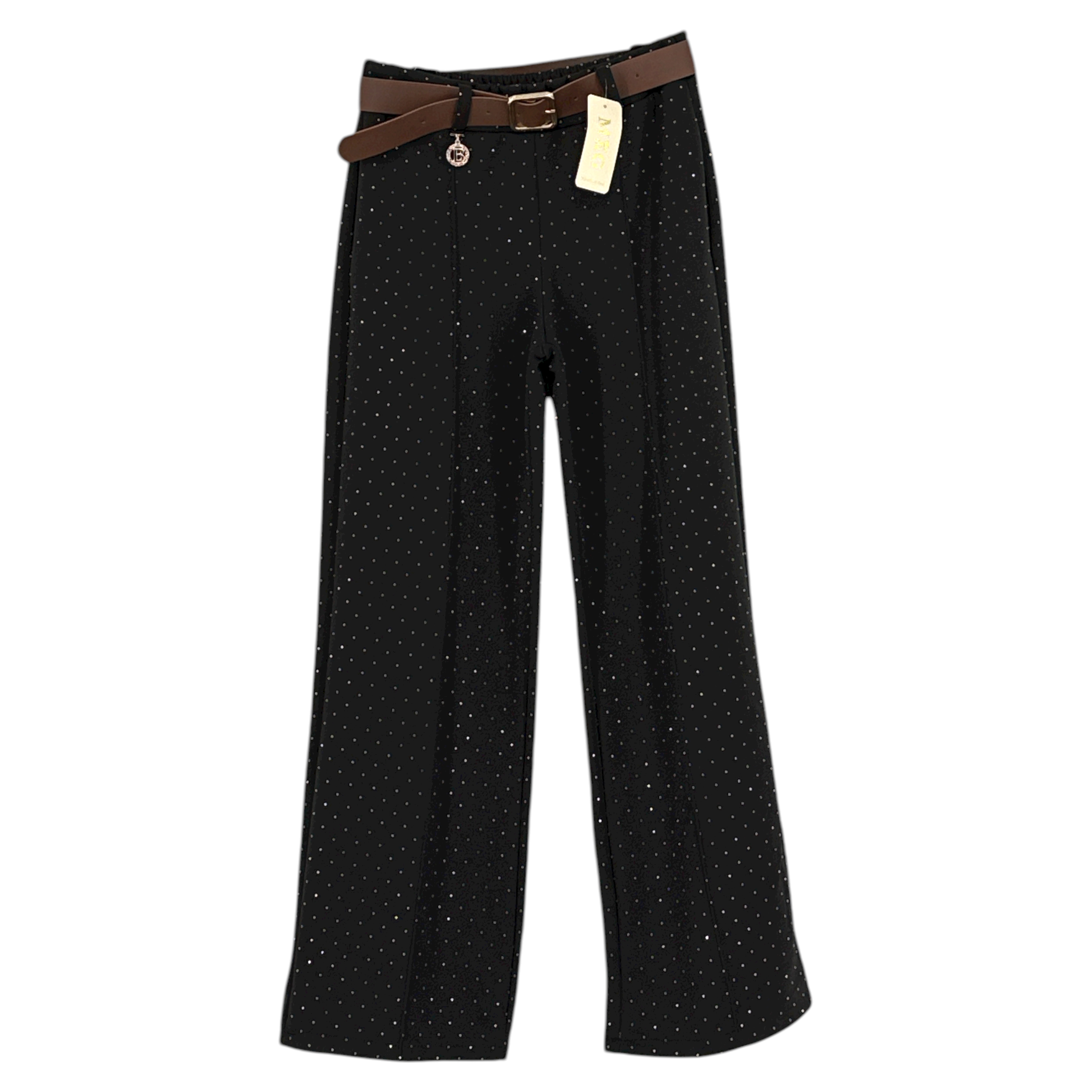 Παντελόνα Γυναικεία 8470 μονόχρωμη σε μαλακό ζεστό και ελαστικό ύφασμα με στρας. Έχει στη μέση και αποσπώμενη ζώνη. Είναι χυτό στο πόδι με πολύ ελαστικότητα. One size καλύπτει μεσαία μεγέθη.