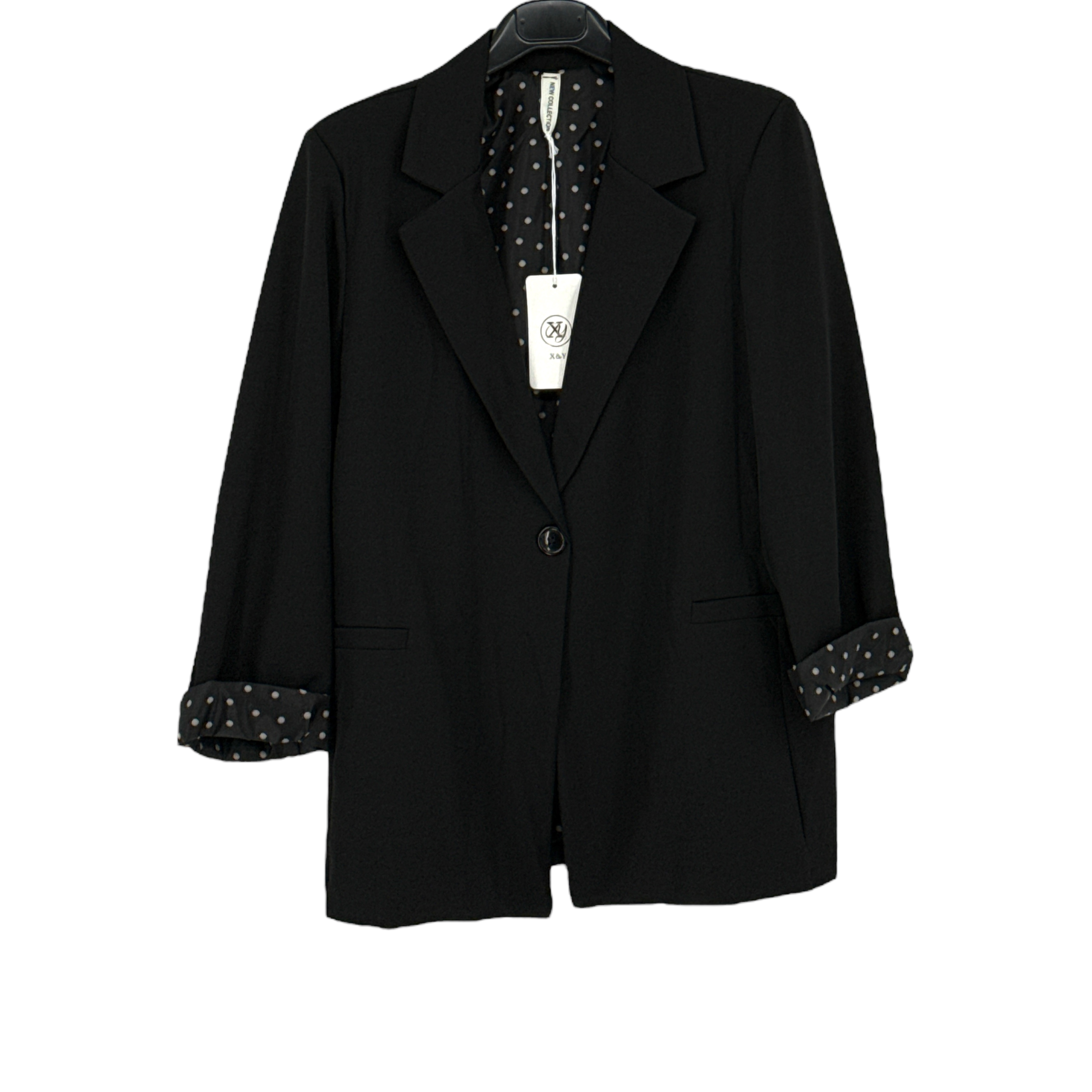 Σακάκι Γυναικείο μονόχρωμο με πολύ εντυπωσιακό φοδράρισμα. Είναι με πέτο και μονοκούμπι έχει δύο φιλετάκια κοφτά φιγούρας και είναι σε λεπτό χυτό ύφασμα. Καλύπτει μικρά και μεσαία μεγέθη.