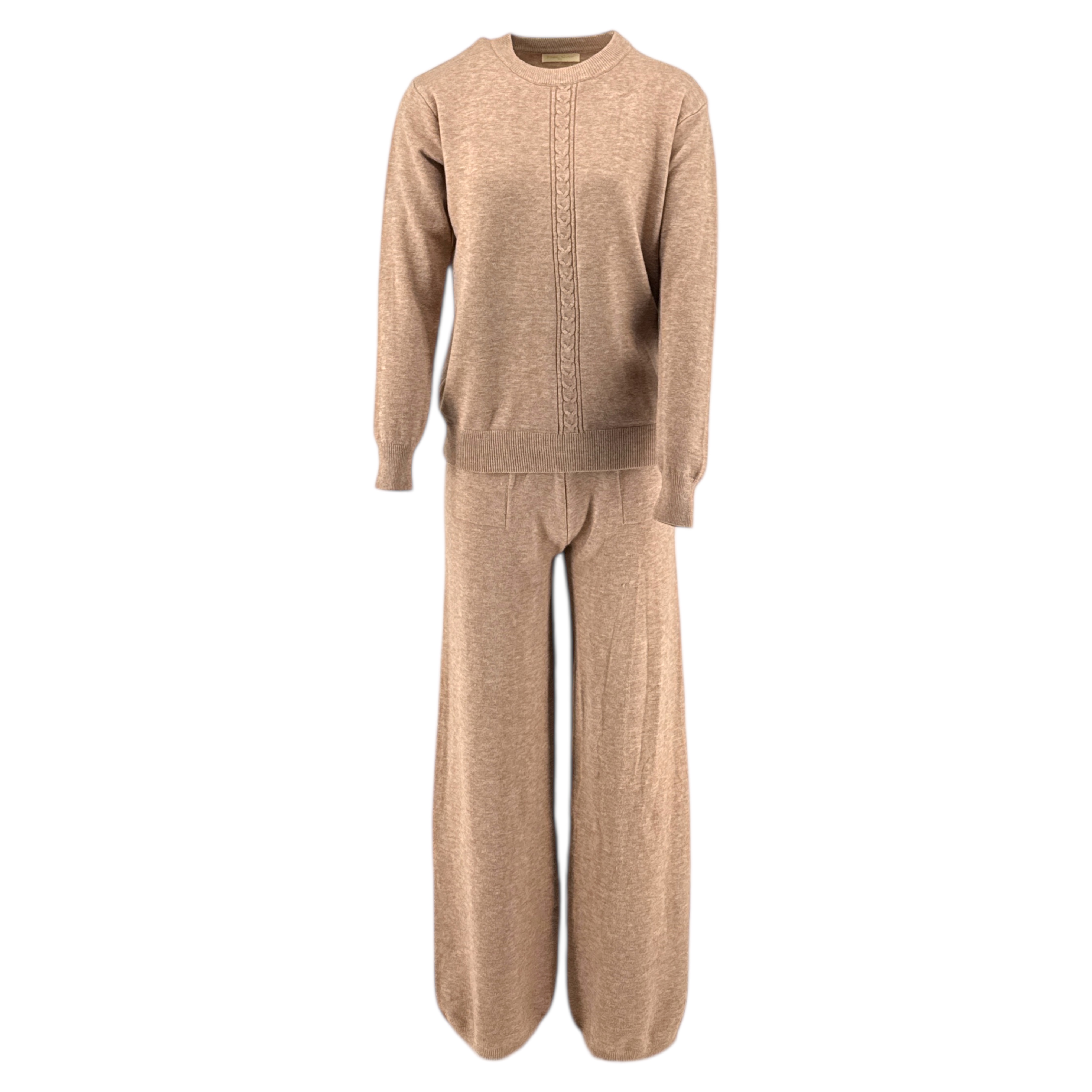 Σετ Πλεκτό Γυναικείο C280 μονόχρωμο σε ίσια λεπτή στρωτή πλέξη με μια λεπτή πλεξούδα μπροστά στη μπλούζα. Η παντελόνα έχει λάστιχο και κορδόνι και δύο λοξές τσέπες.