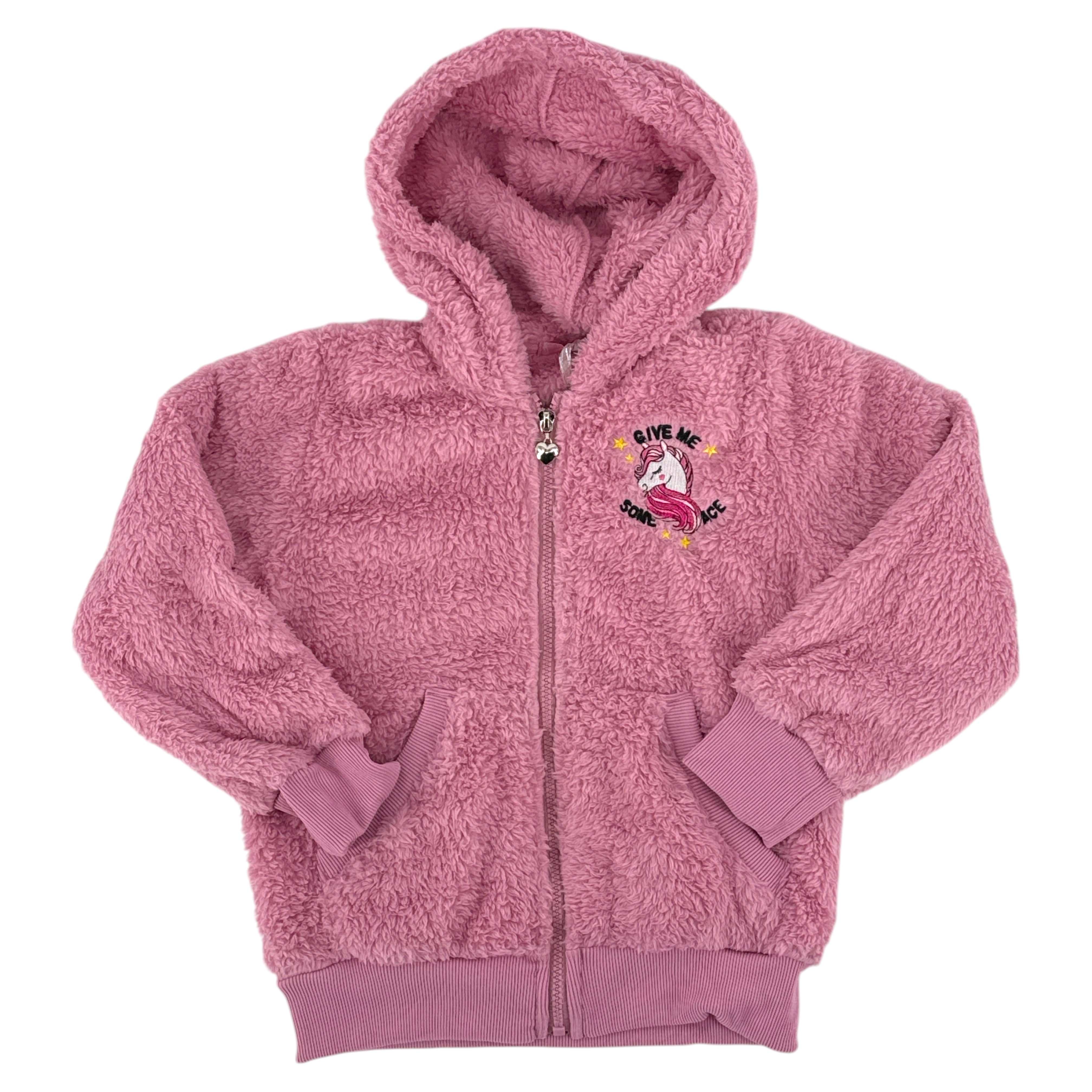 Ζακέτα Παιδική Για Κορίτσι εφηβική σε φλις πολύ μαλακό και ζεστό. Είναι ανοιγόμενη με φερμουάρ, έχει κουκούλα και κέντημα στο πλάι. Τα μεγέθη του είναι μεγάλα.