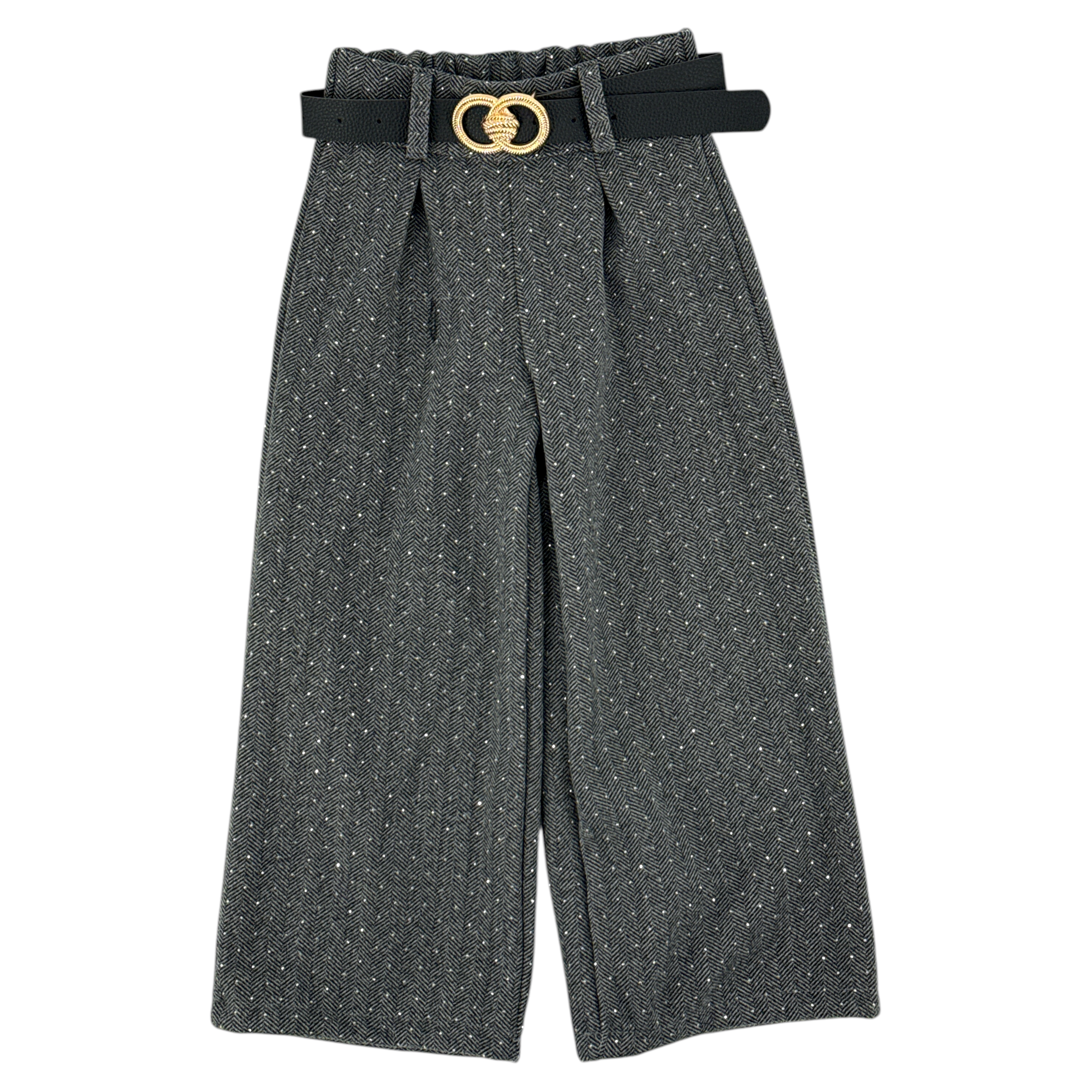 Παντελόνι Παιδικό Για Κορίτσι σε γεμάτο ζεστό ύφασμα με στρας ψαροκόκαλο με λαστιχάκι πίσω στη μέση και ζώνη αποσπώμενη. Περιέχει ζώνη αποσπώμενη.