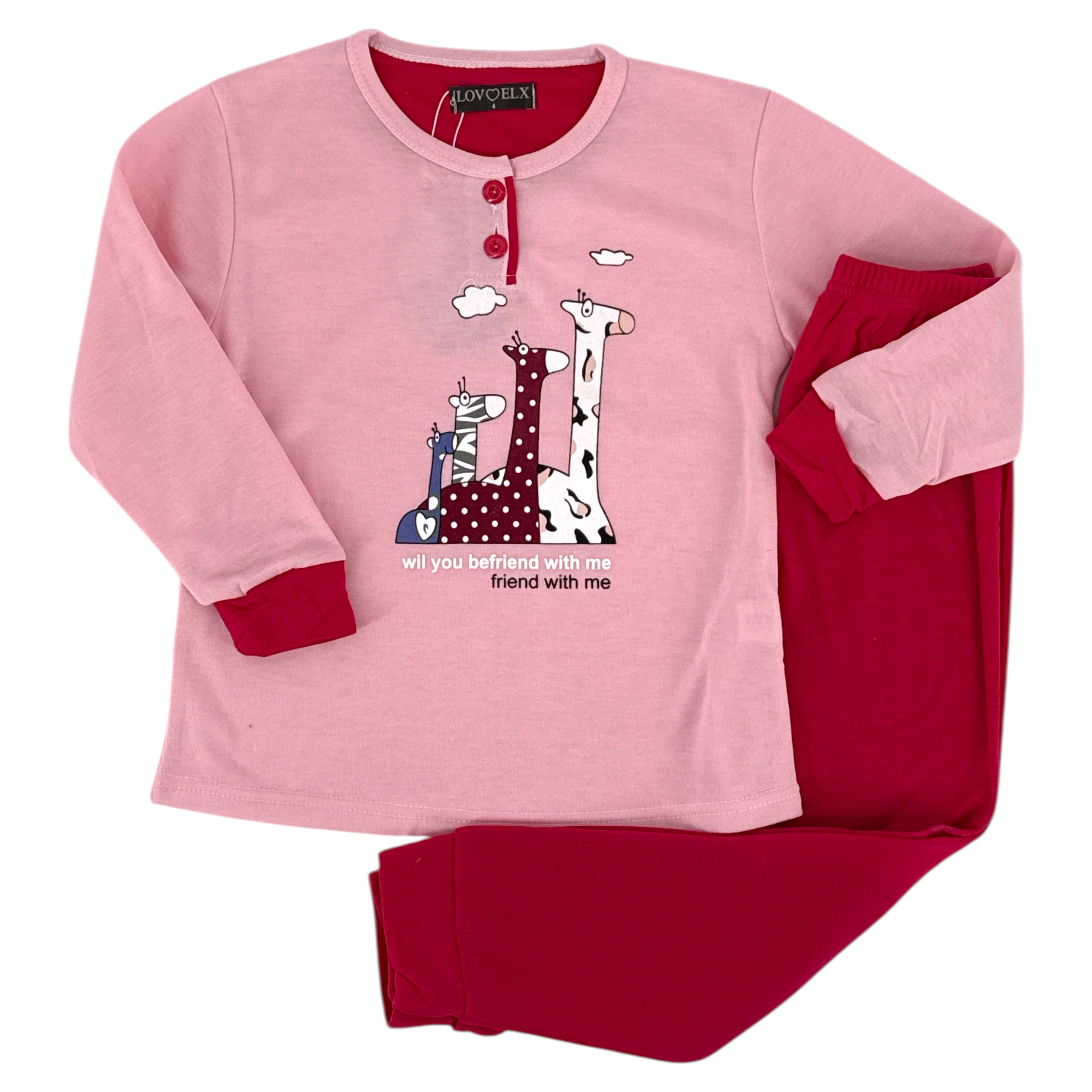 Πιτζάμα Παιδική Για Κορίτσι F1895 2τμχ μπλούζα λαιμόκοψη με κουμπιά και τύπωμα, παντελόνι μονόχρωμο με λάστιχο στη μέση.