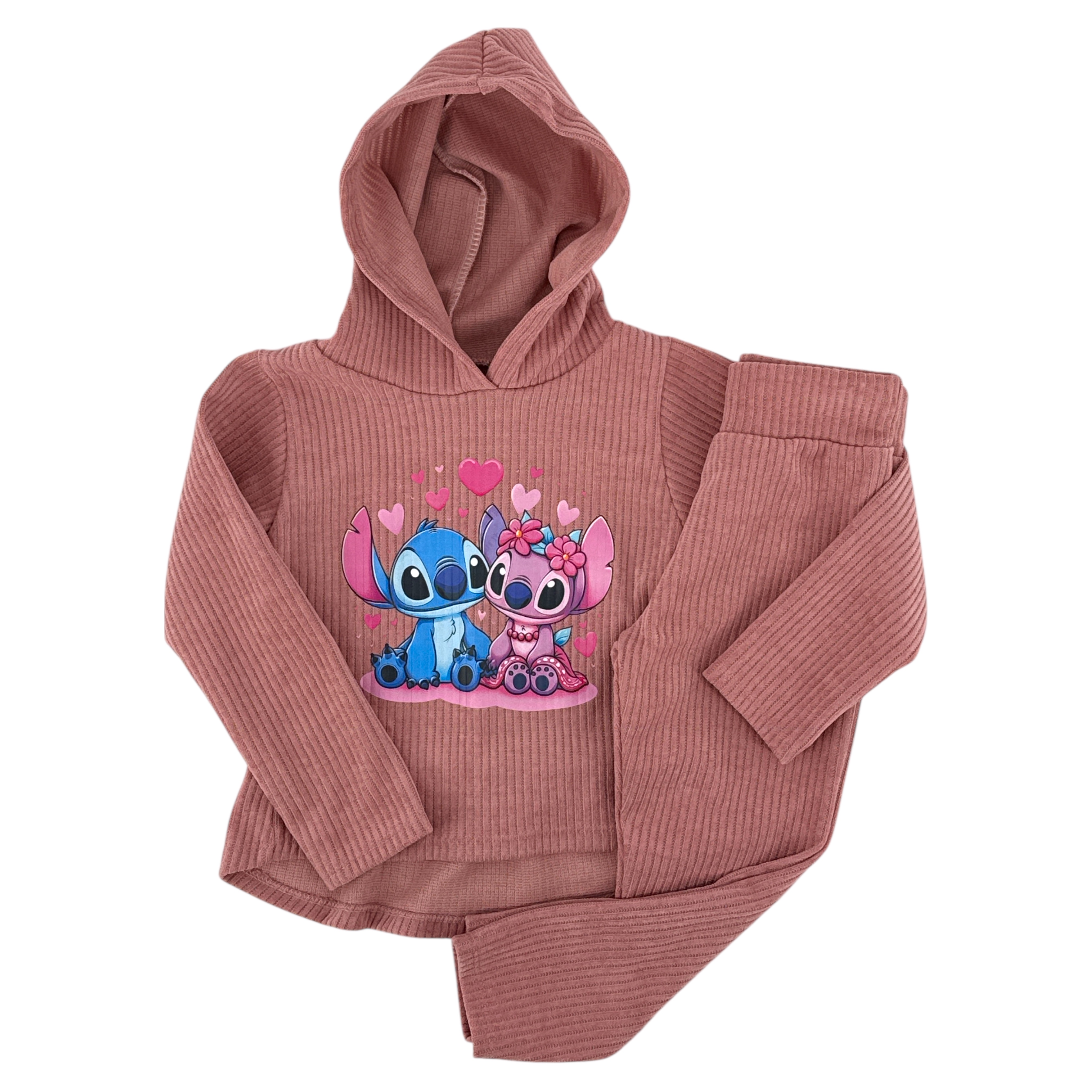 Σετ Παιδικό Για Κορίτσι ριπ σε skiny γραμμή 2τμχ μπλούζα με κουκούλα και τύπωμα, παντελόνι με φαρδύ λάστιχο στη μέση.