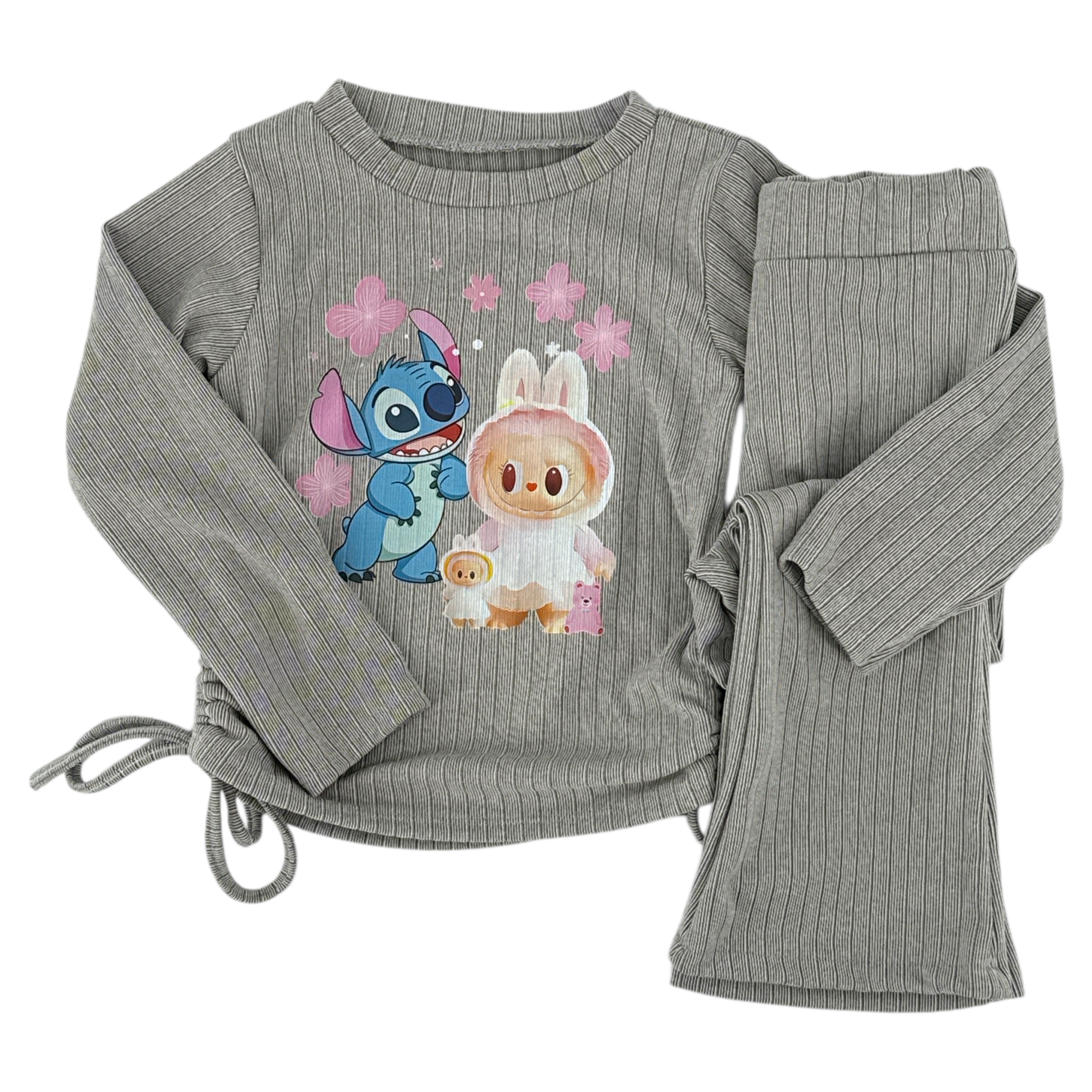 Σετ Παιδικό Για Κορίτσι ριπ 2τμχ μπλούζα λαιμόκοψη με τύπωμα και σχεδιαστικό κορδόνι στο πλάι, παντελόνι με φαρδύ λάστιχο στη μέση και τελείωμα καμπάνα.